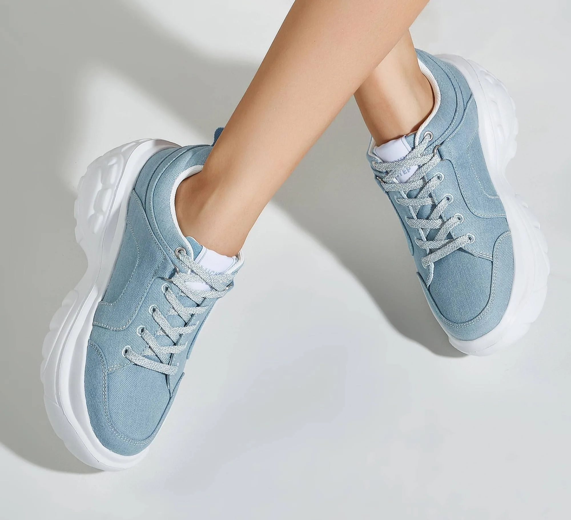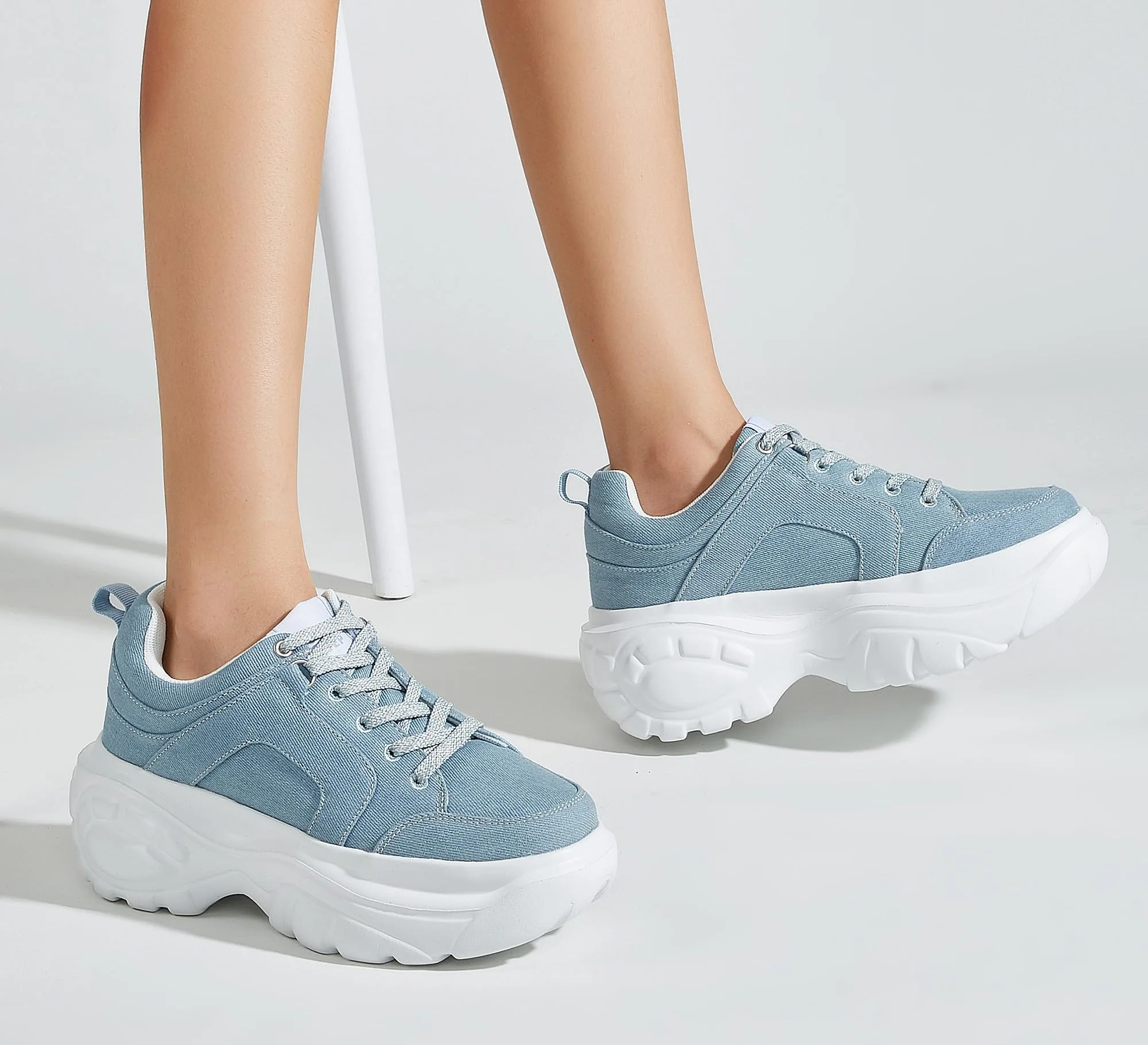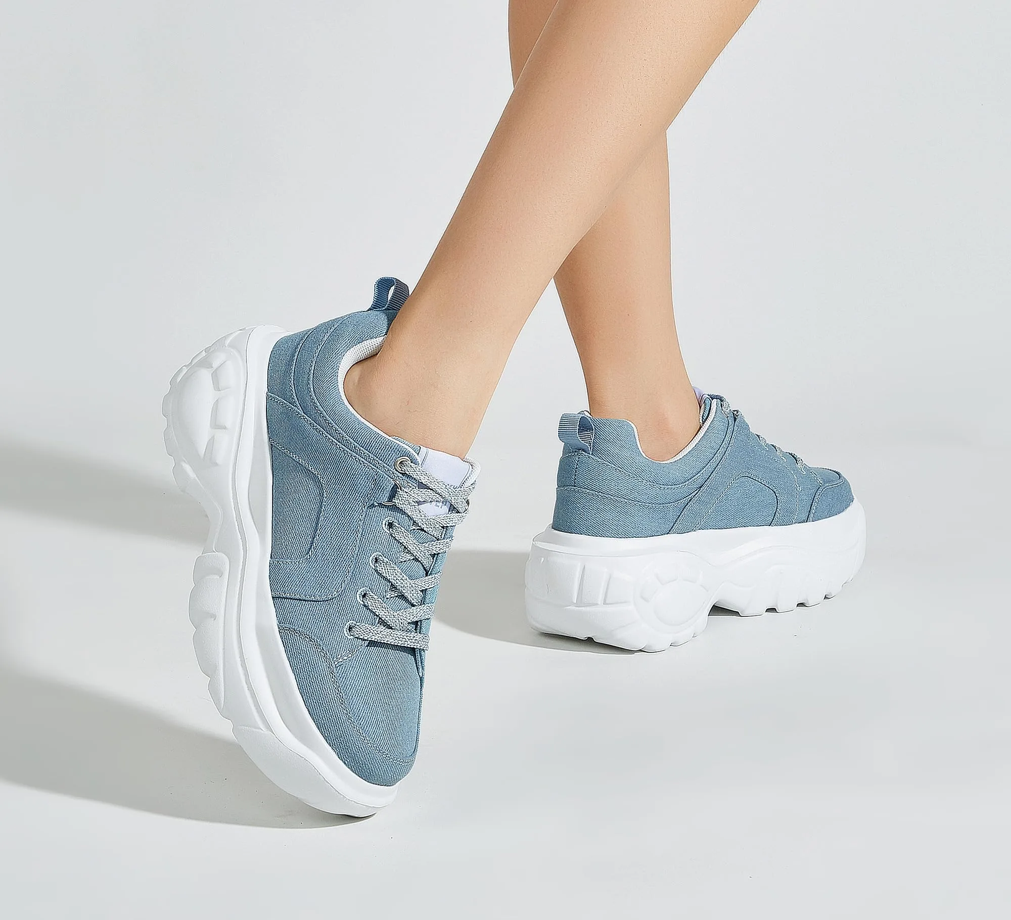 Women’s Denim Lace-Up Chunky Sneakers